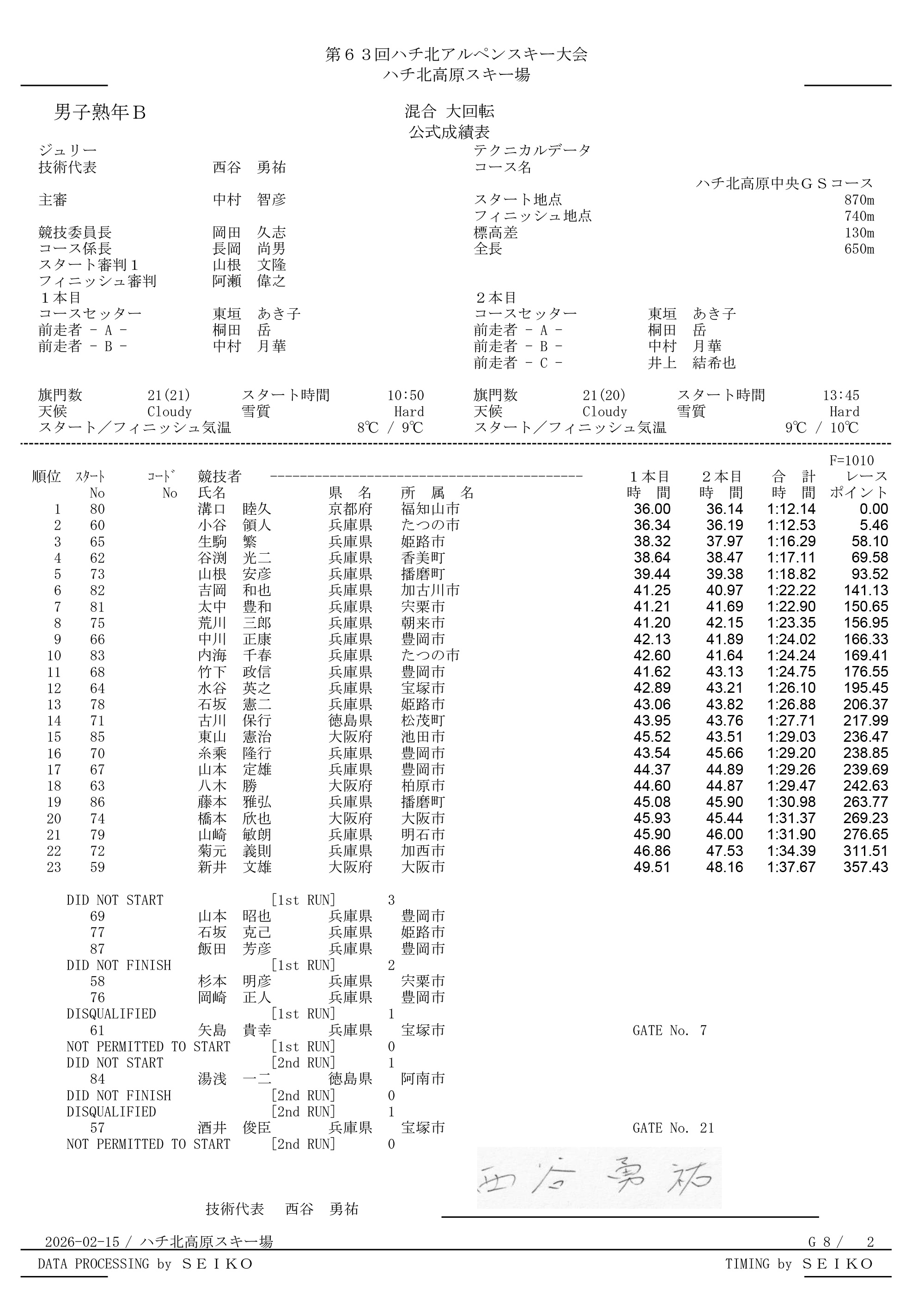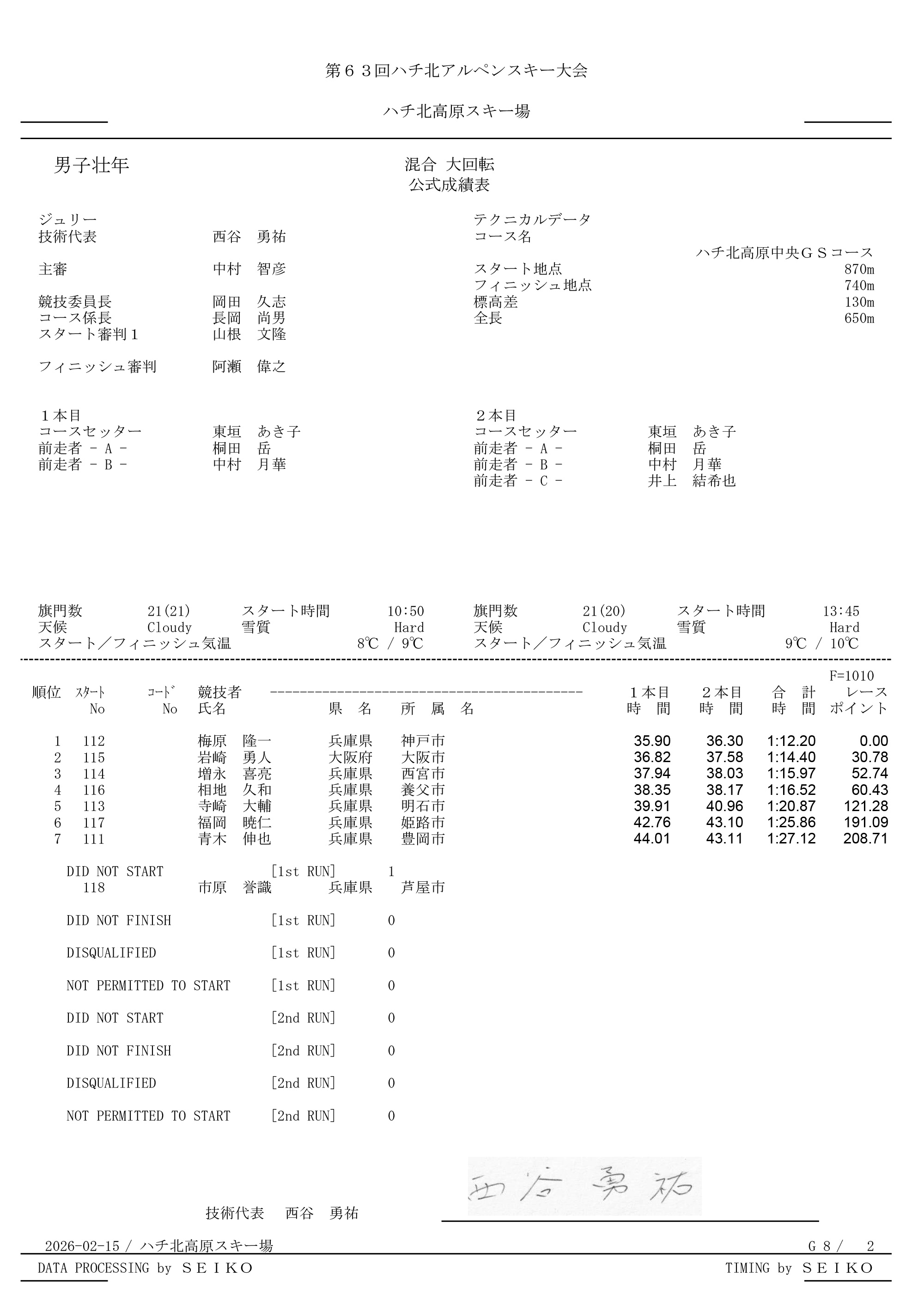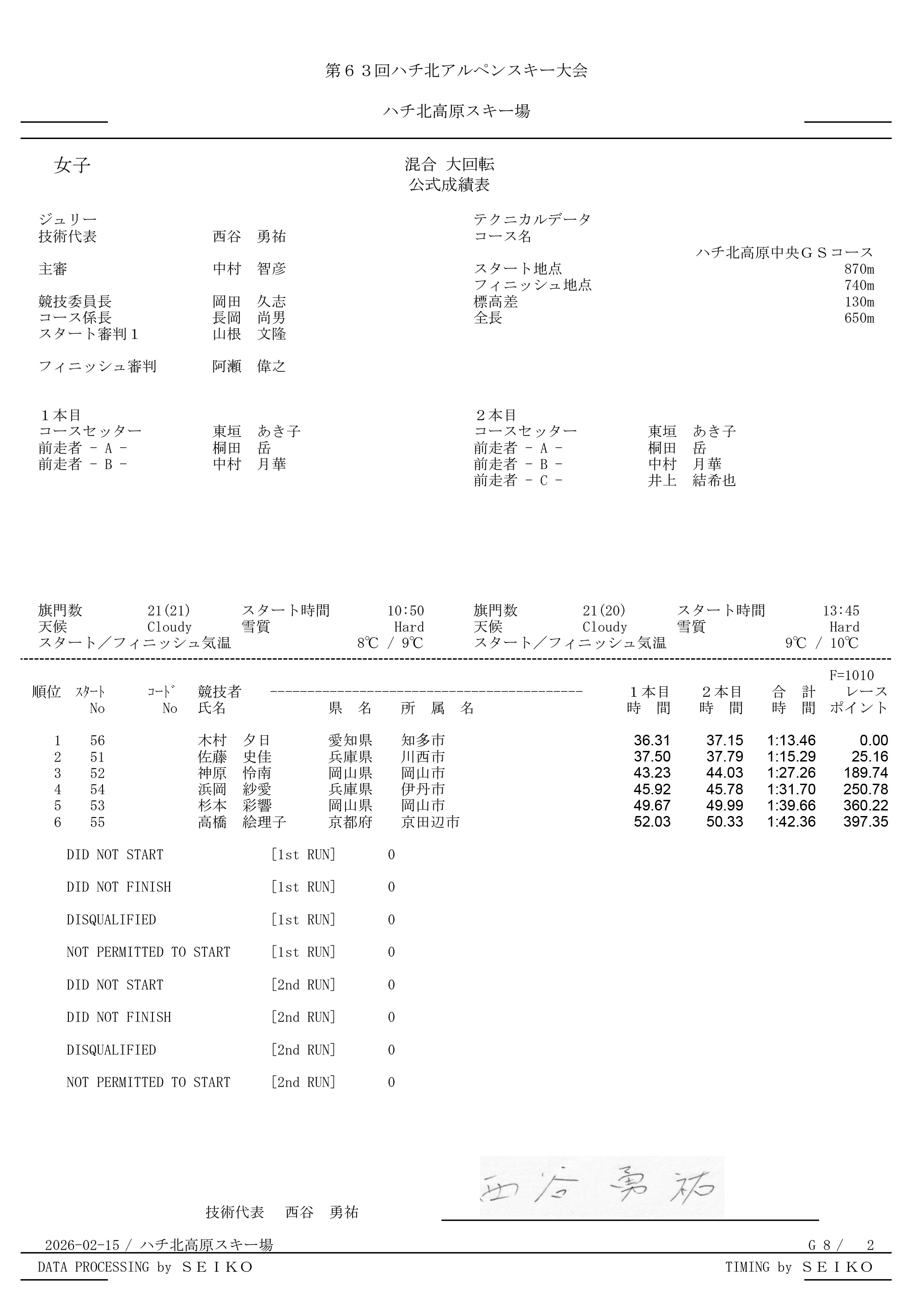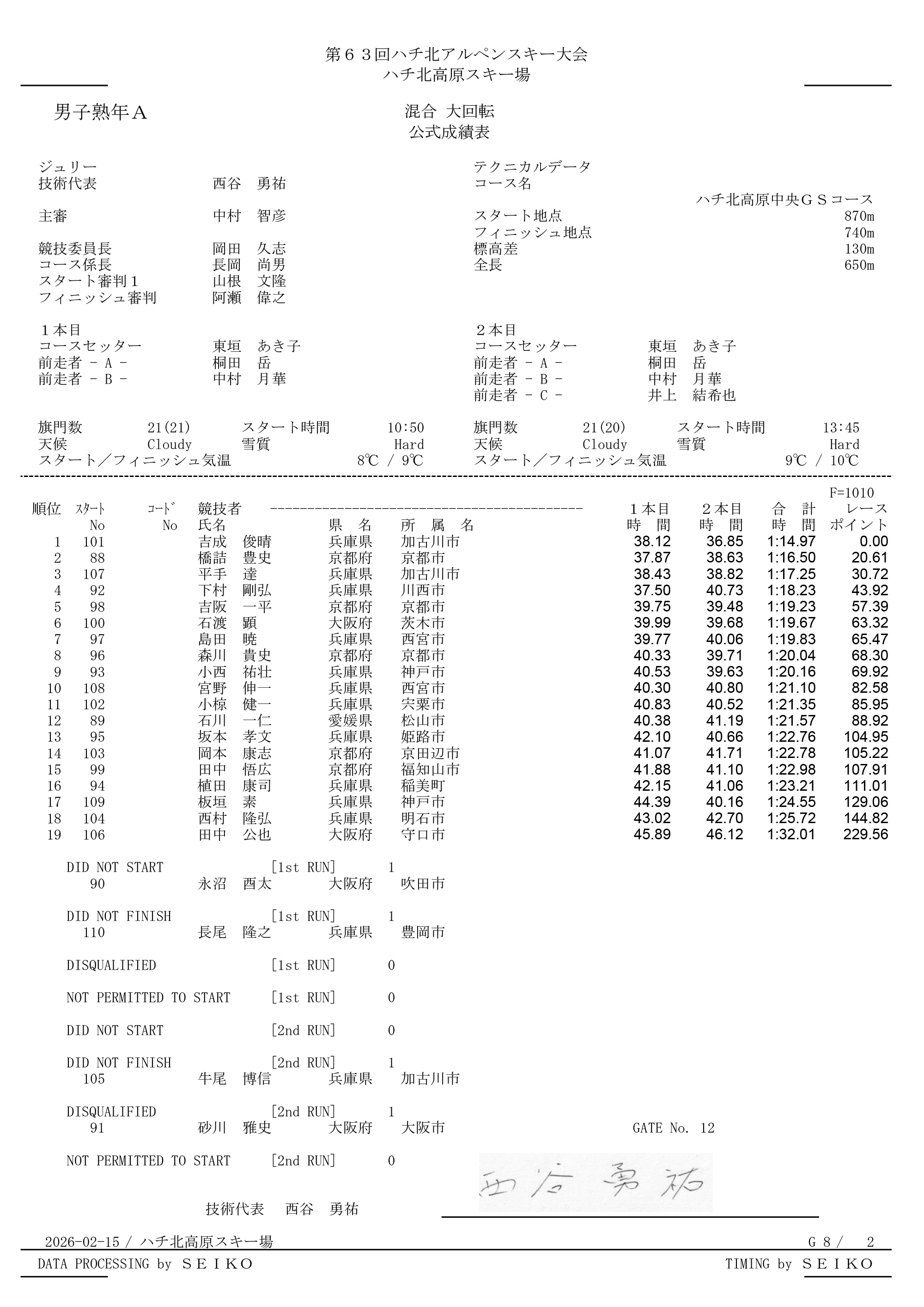 第63回ハチ北アルペンスキー大会の結果を発表いたします【2026年2月15日(日)】2026/02/15