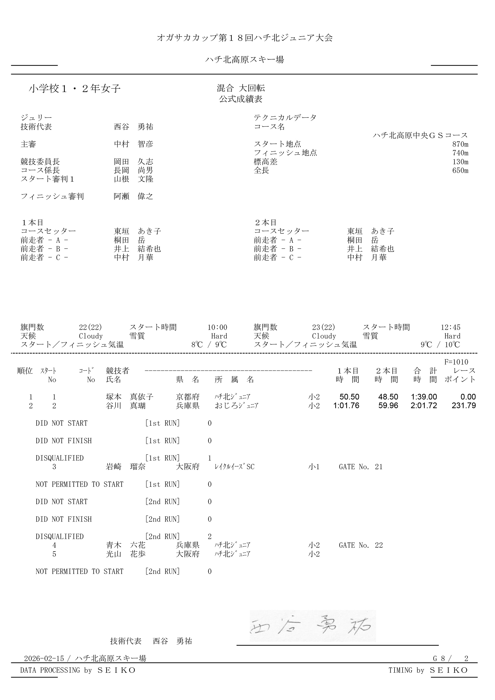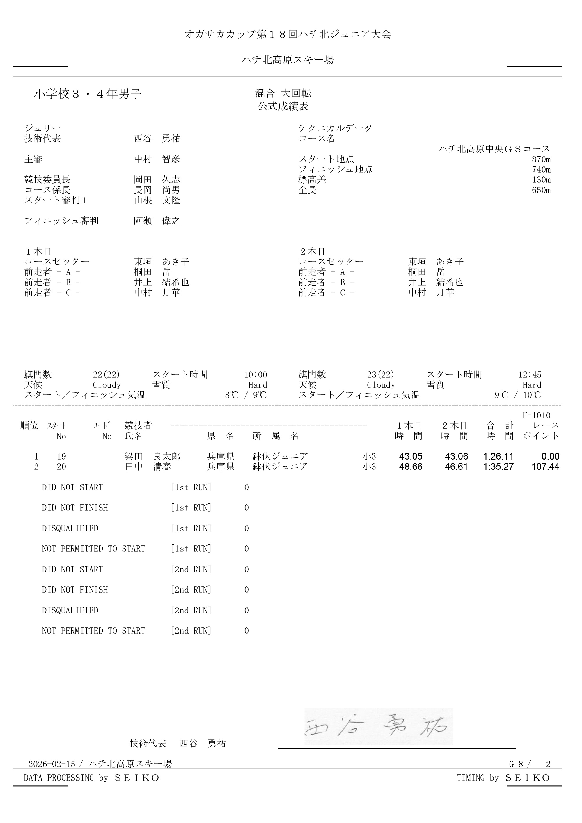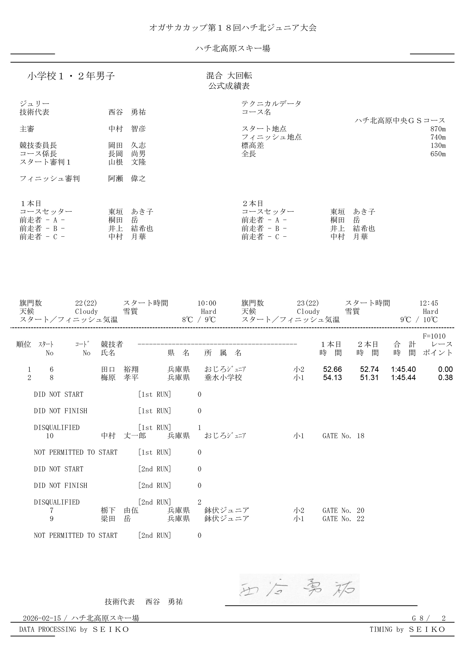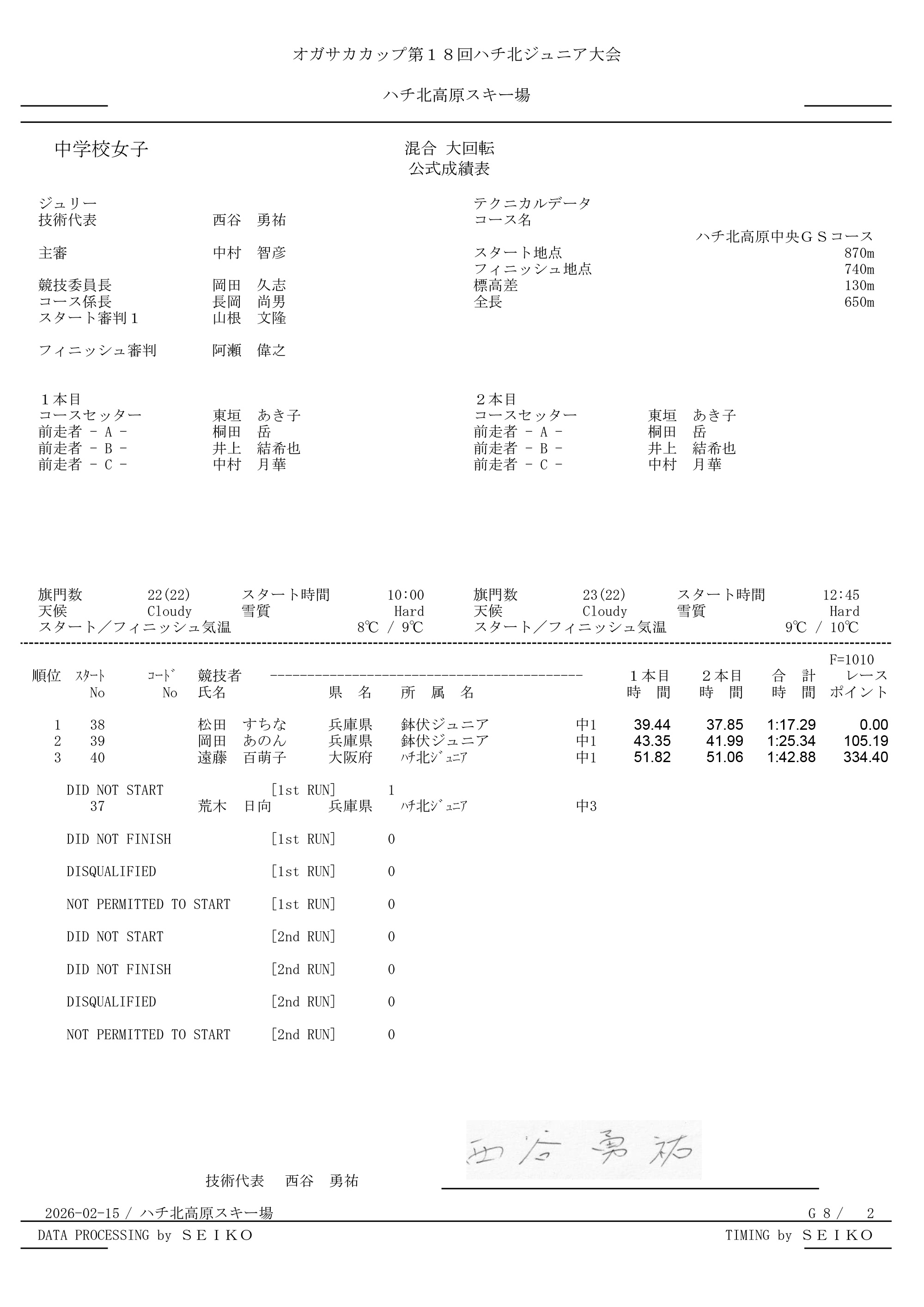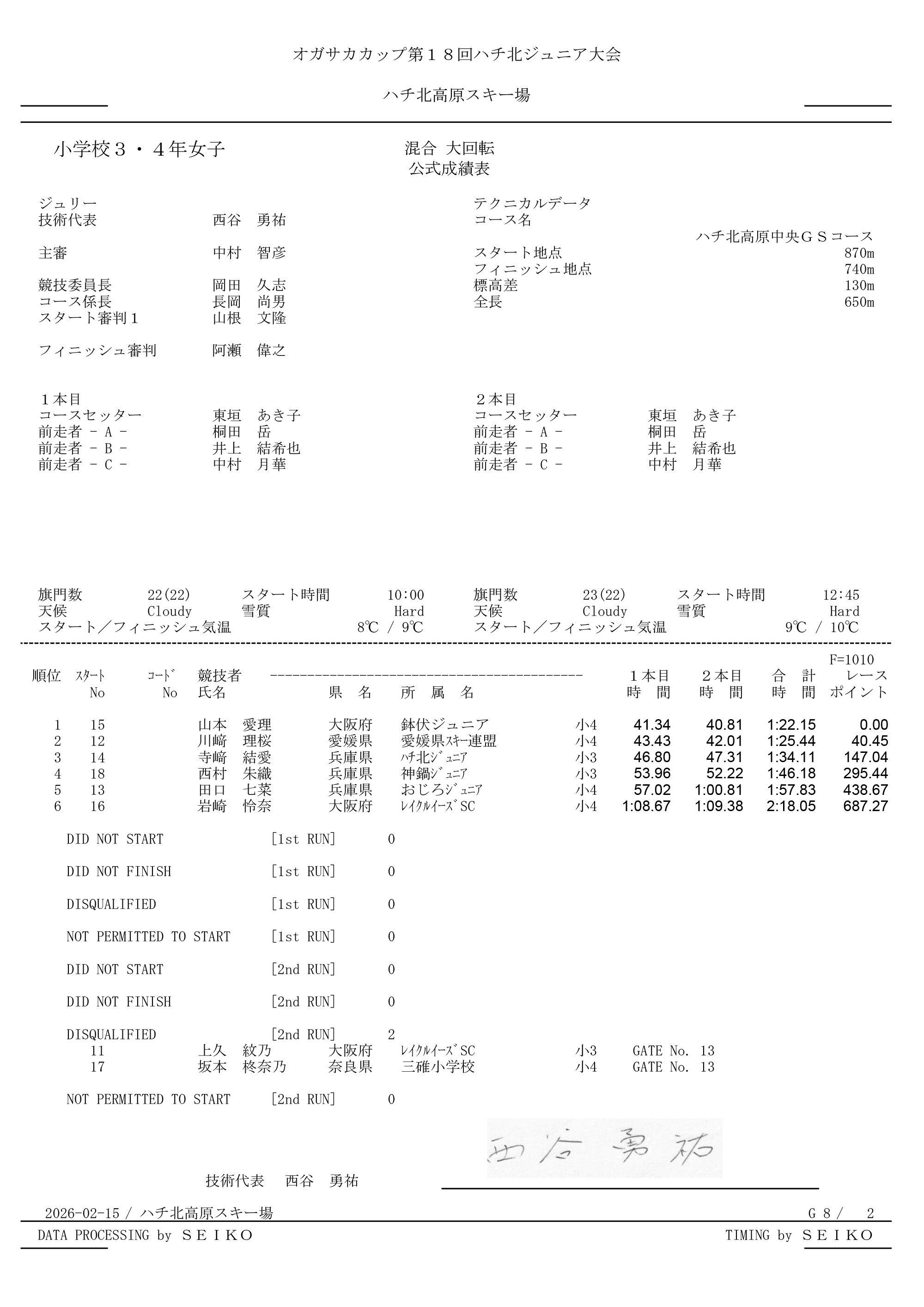 第63回ハチ北アルペンスキー大会の結果を発表いたします【2026年2月15日(日)】2026/02/15