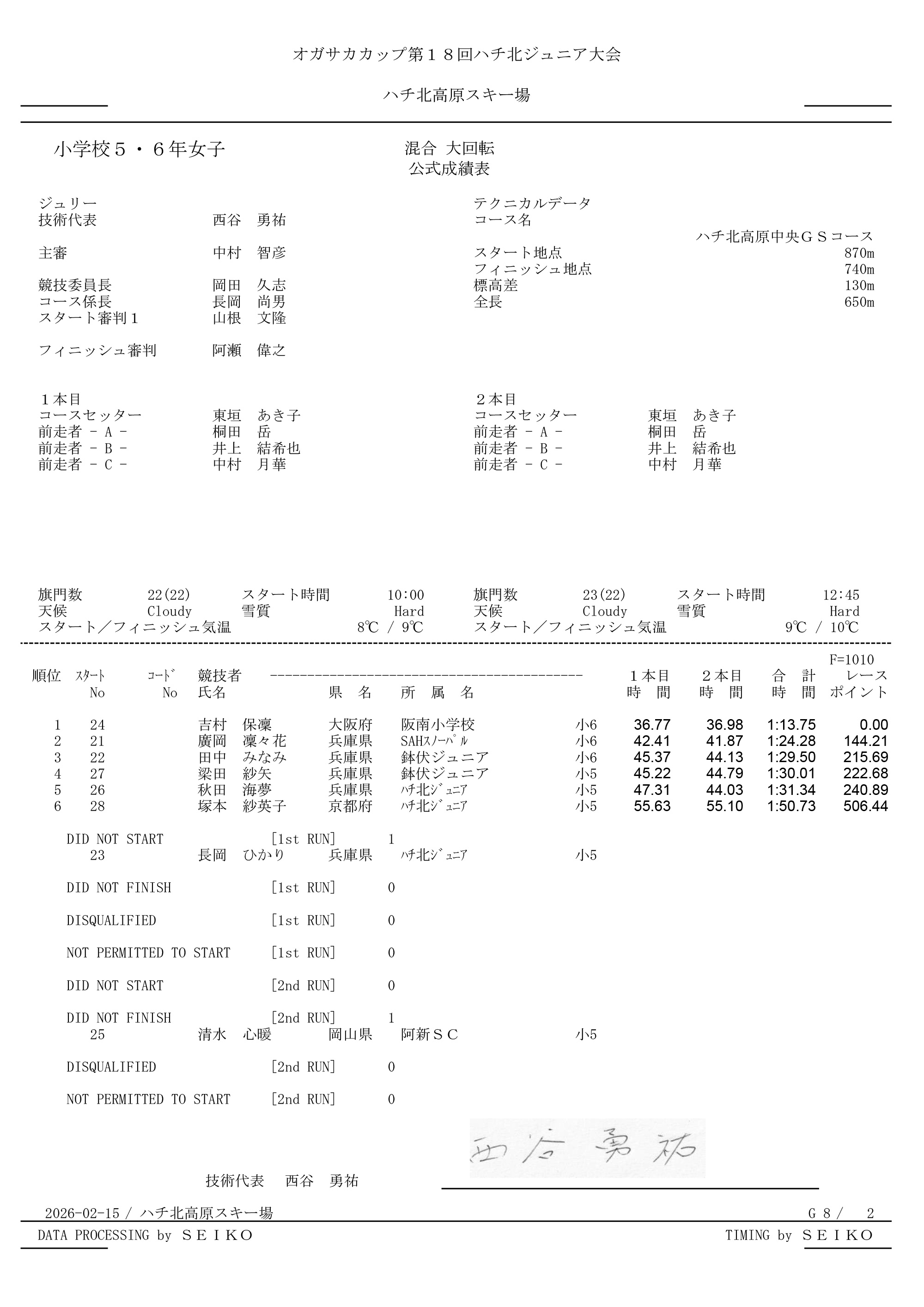 【結果発表】第16回ハチ北スラローム大会 2024年2月17日2024/02/17