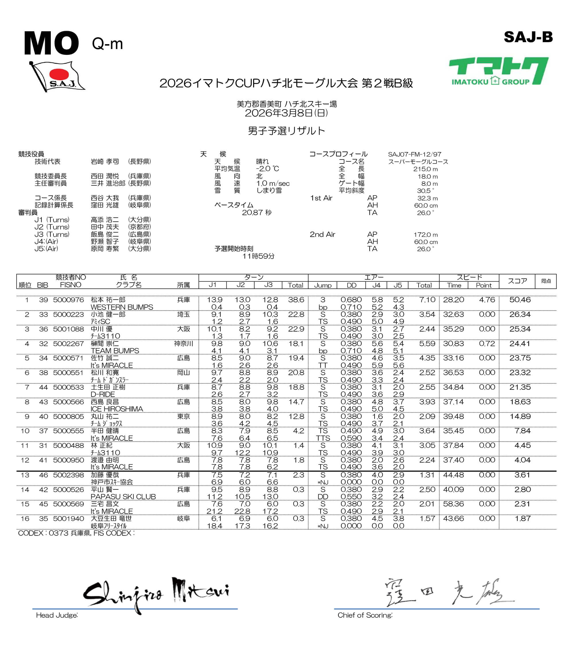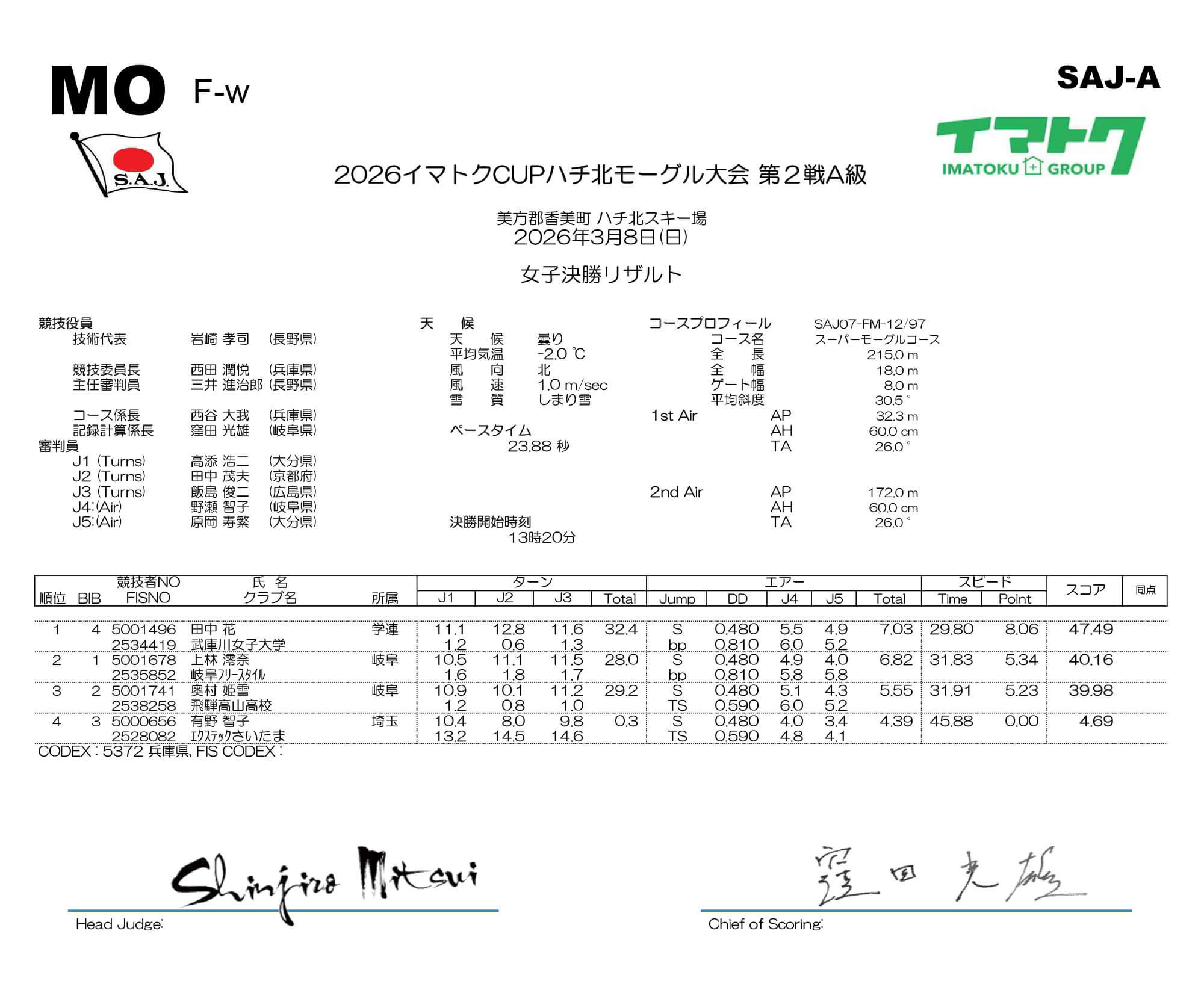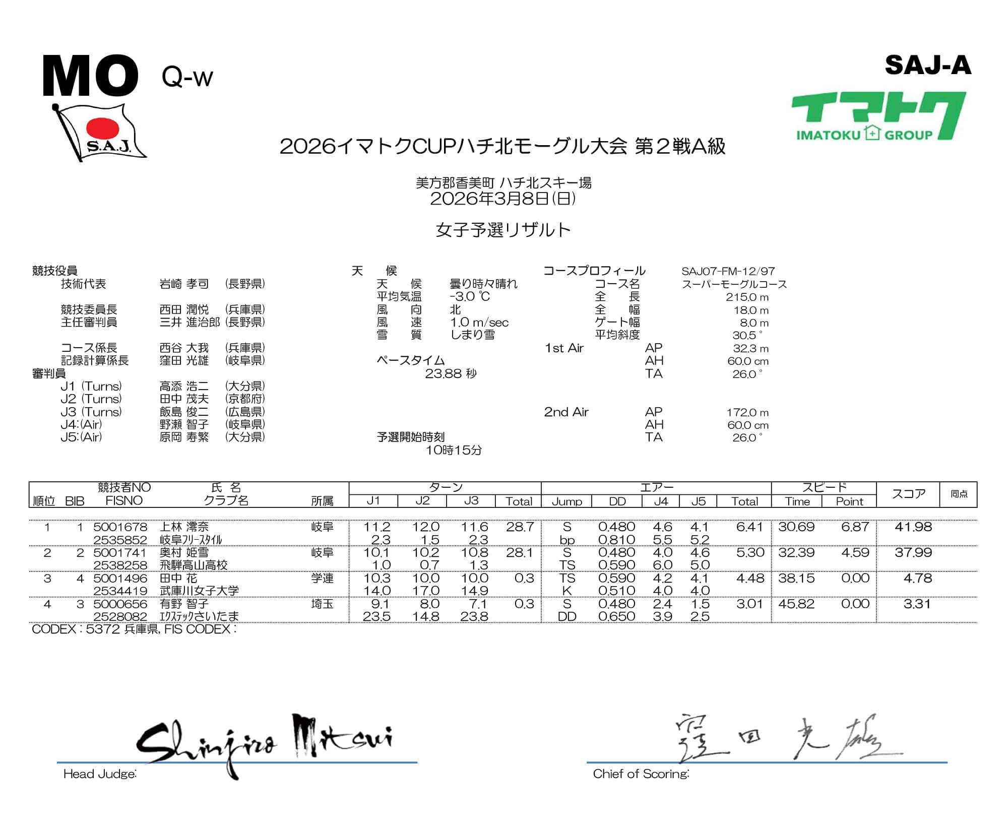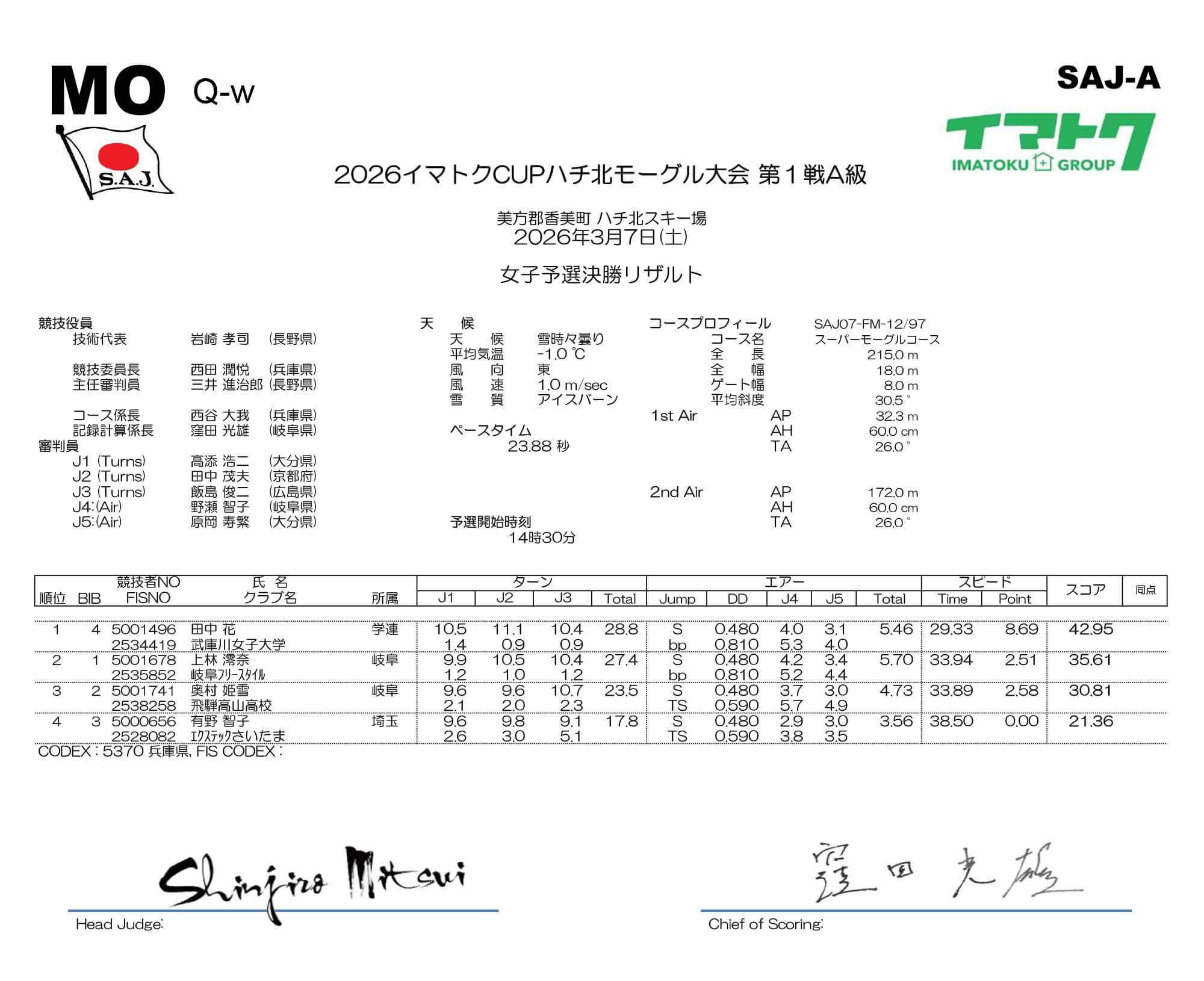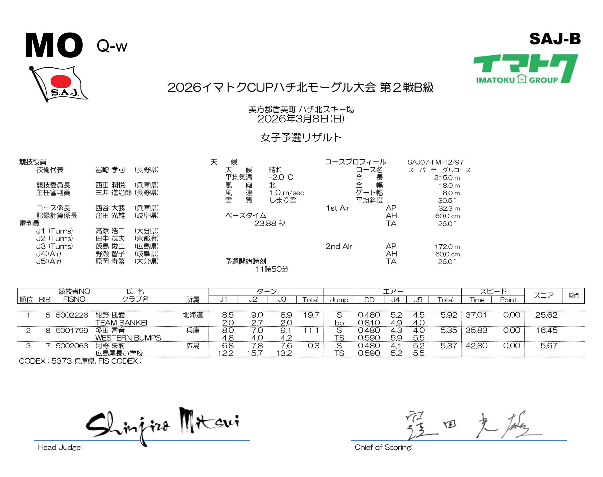 2026イマトクCUP ハチ北モーグル大会の結果を発表いたします