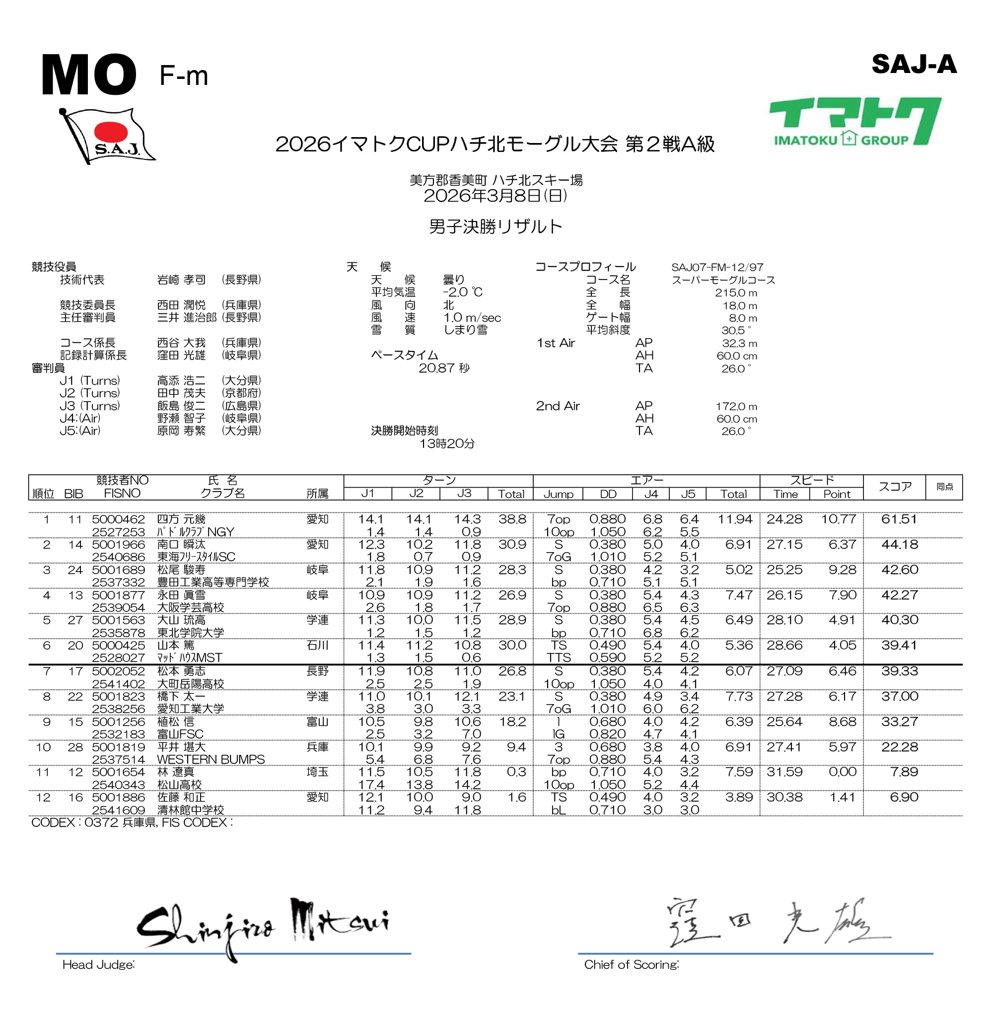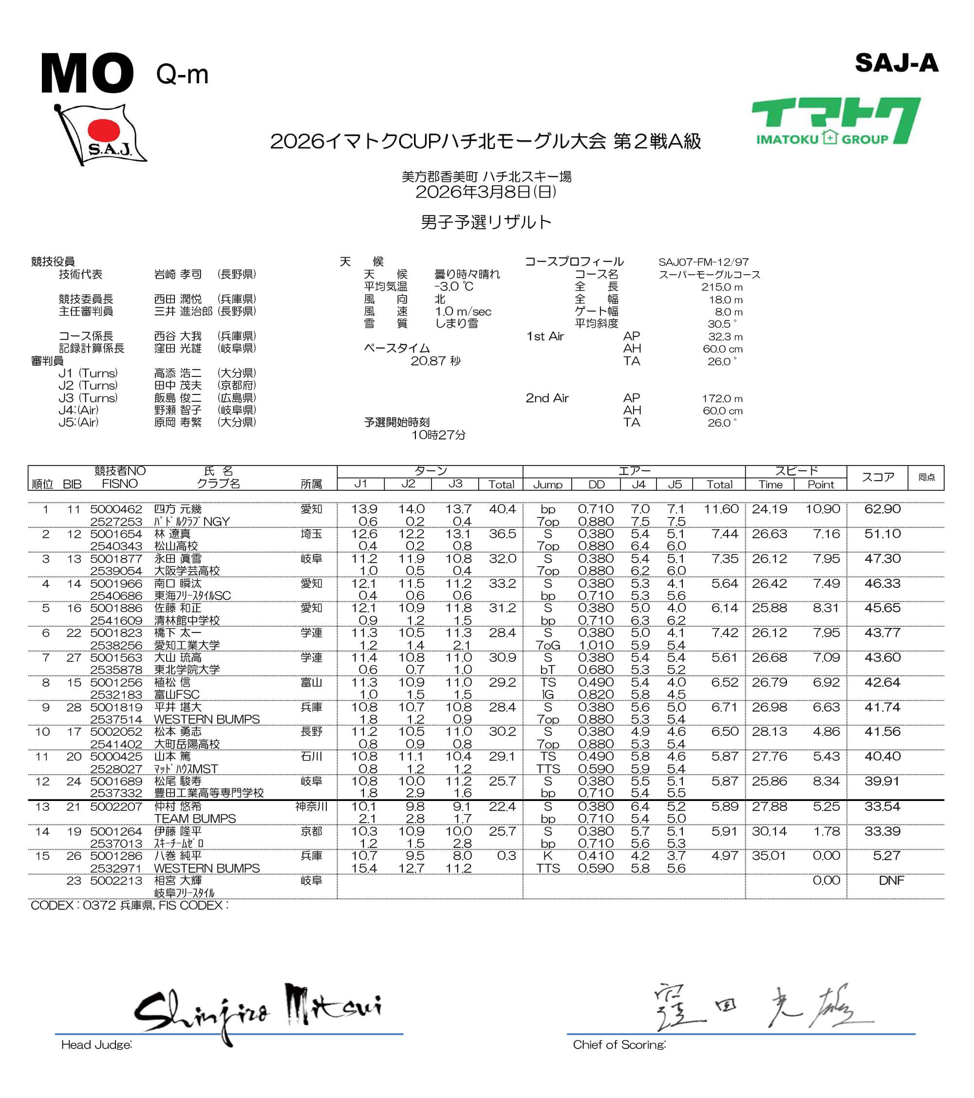 2026イマトクCUP ハチ北モーグル大会の結果を発表いたします【2026年3月7日〜8日】2026/03/12